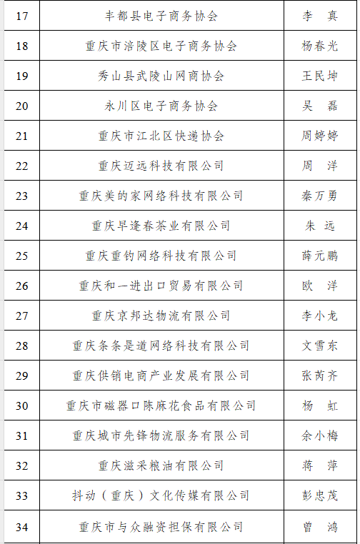 重庆市网商协会第三届理事单位名单