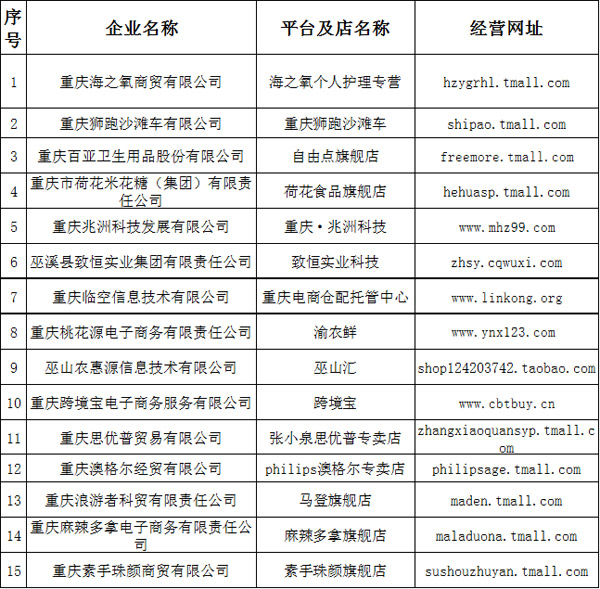 根据《第五届重庆市优秀网商评选活动通知》,9月8日下午3点,第五届重庆市优秀网商(服务商)评选专家评审会在重庆市网商协会会议室顺利召开。评审工作按照公开、公平、公正、定性和定量兼顾的原则。对申报企业信息进行讨论并通过表决,一致确定第五届重庆市优秀网商是:重庆百亚卫生用品股份有限公司等15家企业。 现将评选结果公示如下:(排名不分先后)