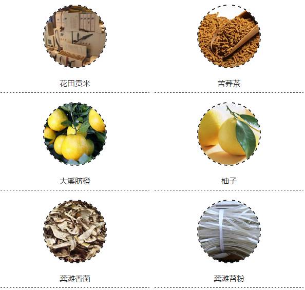 花田贡米、苦荞茶、大溪脐橙、柚子、