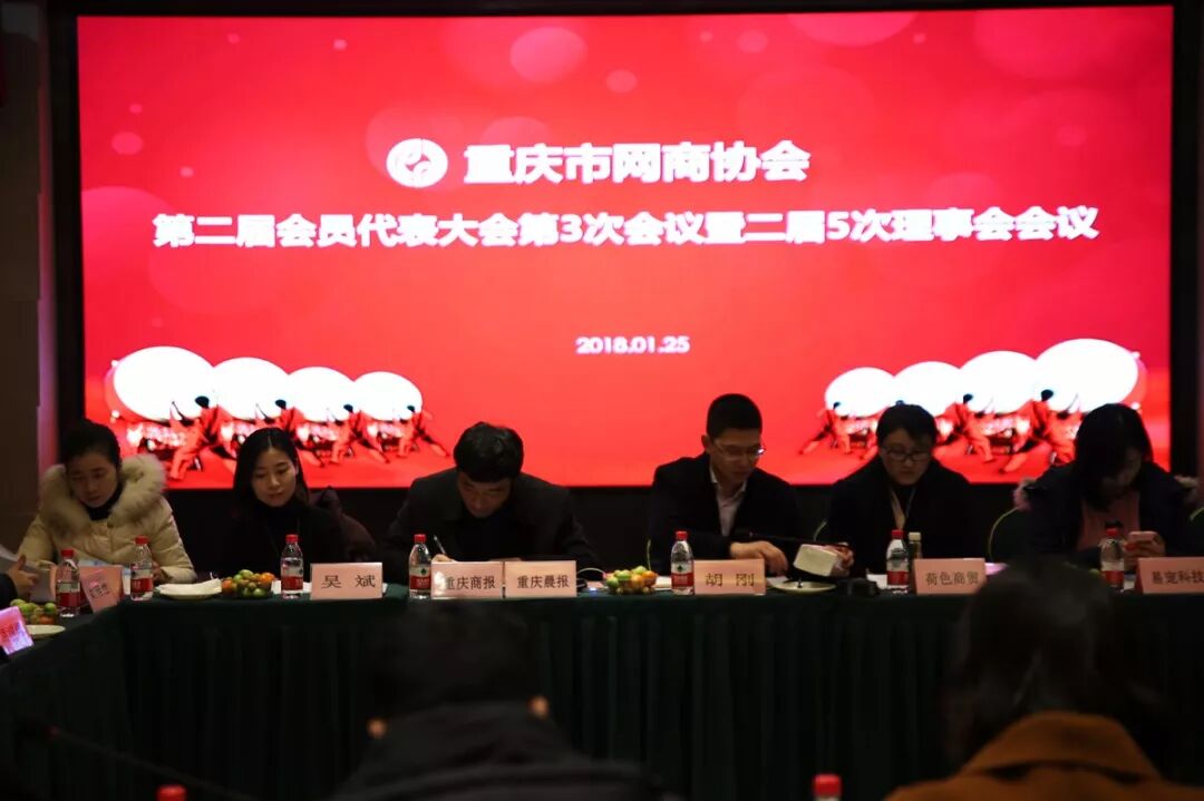 重庆市网商协会召开第二届会员代表大会第3次会议暨二届5次理事会会议今日下午,重庆市网商协会第二届会员代表大会第3次会议暨二届5次理事会会议在重庆网商产业园成功召开,协会全体理事单位和会员单位代表参与了此次会议。