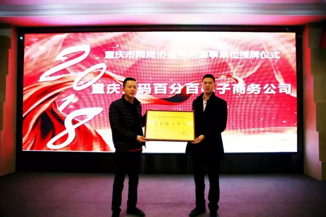 重庆市网商协会会长胡刚为常务理事单位重庆大码百分百电子商务有限公司授牌