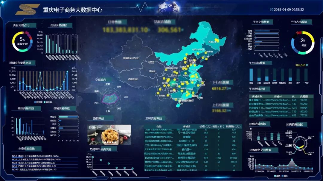 目前,重庆电子商务大数据可视化系统区县板块也已上线,在未来两年,我市38个区县将实现电子商务可视化子中心全覆盖。