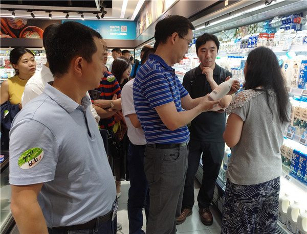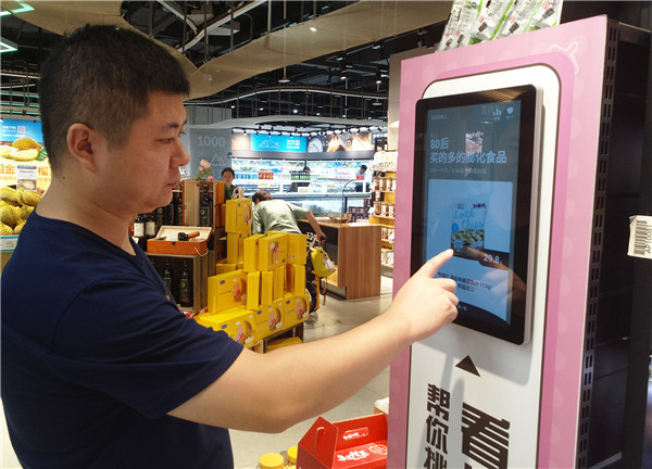 盒马生鲜工作人员为我们介绍超市的运营情况及发展规划。