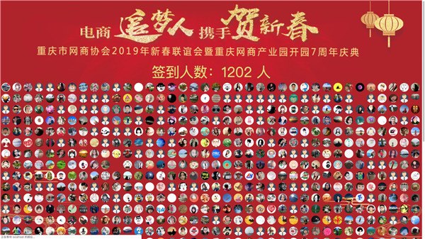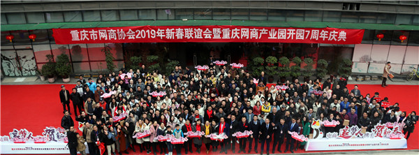 电商追梦人,携手贺新春!1月23日,重庆市网商协会2019年新春联谊会暨重庆网商产业园开园7周年庆典在重庆网商产业园举行!在市、区两级政府的指导下,市网商协会专家顾问团、会员单位及行业企业代表,市网商协会友好协作单位、行业协会负责人、合作机构代表,区县网商(电商)协会负责人及新闻媒体等1200余名电商追梦人欢聚一堂,携手贺新春。