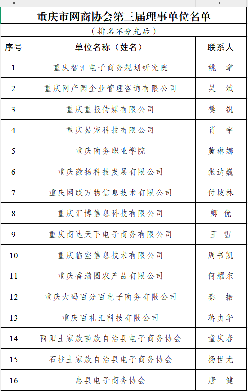 重庆市网商协会第三届理事单位名单
